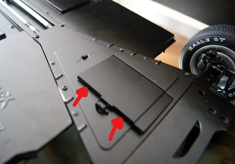 I also had to gently file box the battery box lid because it just didn’t fit/it got stuck when you tried to close it – Be gentle with this, it only needs to lose a little edge to fit properly, see the image/arrows for an example. The other delicate moment is getting the wires in the right places, while simultaneously trying to hold them down and screw them in – TOP TIP #2: A small piece of sellotape/masking tape goes a long way – unless you’ve got three hands. One you’ve done that, you’ve got the fuel tank bottom half which goes hand-in-hand with securing that whole section.