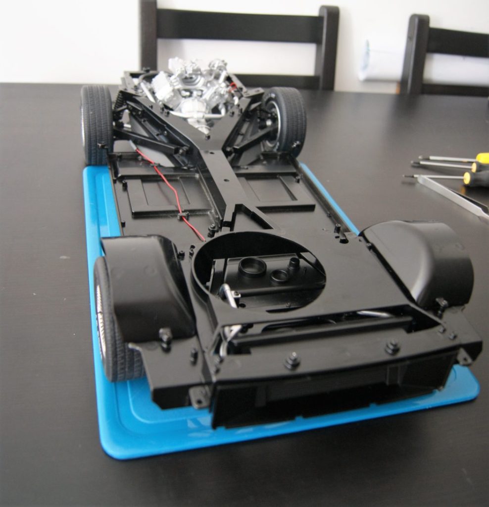 After adding the Chassis Plate and, like the Radiator Grille, you’ve got something strong and a little more resilient. Now here comes one of my top tips: Unless you’ve glued in the six pipes on top of the engine, I’d suggest just taking them off because they’re going to fall off if you don’t – Don’t discover this later or try to put them back every time you turn the car over, there’s just no point.