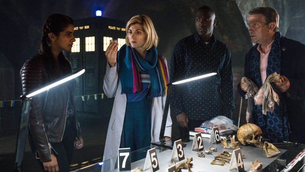 Wayne Yip‘s direction is some of the best we’ve seen yet, many of his shots providing some of the most awe-inspiring imagery we’ve seen all series. Before the show’s return last year, we were promised a more cinematic look for Series 11, yet Resolution is the first episode to truly look and feel that way. The various action sequences are fantastic, with great cinematography and editing at play, whilst Segun Akinola‘s musical score is big, loud and bombastic (just as Who scores should be). The design of the piecemeal Dalek is wonderfully off-kilter and odd, but it works incredibly well in making the audience underestimate the threat the creature poses, proper casing or not.