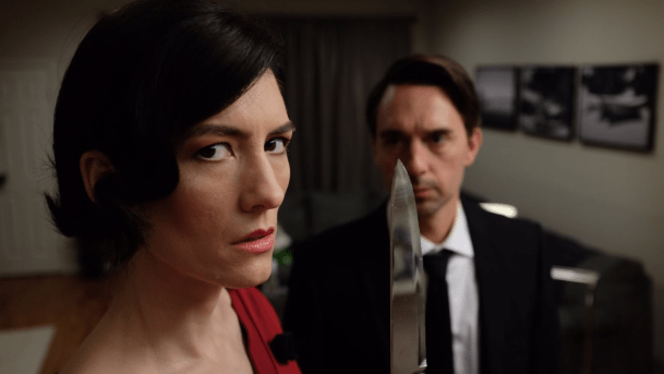 Here’s a little synopsis: On the anniversary of her husband’s death, Joan (Jessica Graham) along with her friend / partner Michael (Christopher Soren Kelly) invites some mutual acquaintances for dinner. As past grievances resurface, the pair murder the guests one by one, and skeletons in each of the characters closets are laid bare, leading to a shocking revelation. From the very start, Murder Made Easy stakes its claim as a playful, cheesy whodunit with intentionally kitschy opening titles and overly dramatic music that recalls daytime murder mysteries like Murder She Wrote. There is a fun, pitch-black sense of humour running throughout and the supporting cast clearly have a ball playing various extreme caricatures.