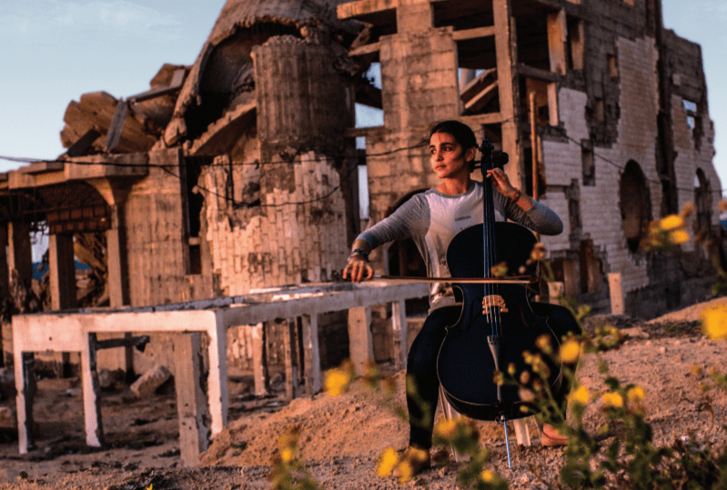 While we have that in our minds, Keane and McConnell’s film focuses in on a selection of people and characters, which both gives us the humanity in the city but also never hides away from the war that erratically explodes, literally, around the residents and always has an influence on every part of their lives. From 19-year-old Karma, well educated and playing her cello in front of bombed-out buildings, to an amazing rap artist, a positive-thinking taxi driver and an Ambulance paramedic, who’s work never stops, everyone has dreams of a better life – both inside and outside of Gaza – but they’re trapped by events around them.