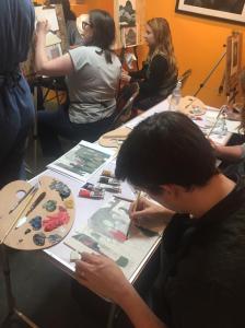 As part of the films release, we were invited to a painting masterclass from Frank Gray, the artist who taught Spall how to recreate Lowry’s distinctive painting style. It was an eye-opening and invaluable experience, really highlighting the difficulty of emulating Lowry’s techniques. We were given a wide variety of his paintings to copy, and while I picked one of the simpler ones, unsurprisingly it’s not as easy as it looks! Gray is an unassuming but incredibly knowledgeable teacher, and as we each picked the paintings we would try and recreate, he talked to us about Lowry’s technique and influences, and provided a great deal of insight into his life and the way his style evolved over time. With this, the film became a much more interesting experience.