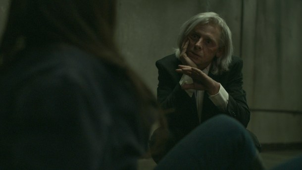 Once there, she discovers Simon Pegg’s Morgan Warner, a man who’s been chained inside and seemingly left on the bare essentials for the past 30 years and by whom? Lauren’s father. Why? We won’t learn that right now because how else would you let a wider, unravelling story reveal itself? Despite this intriguing opening, bar a few scenes and moments that find their feet, after that it pretty much begins a descent into filler but before we get there, let’s pick out a positive.