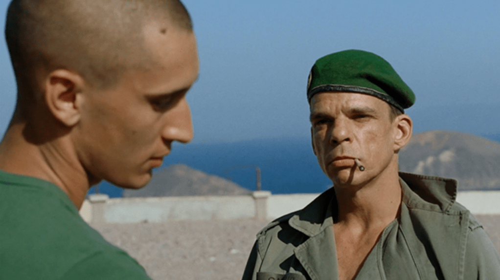 Galoup (Denis Lavant) is an ex-soldier for the foreign legion, writing his memoirs. In flashback, we see him in Djibouti training recruits, until his world of order is thrown into disarray upon the arrival of Sentain (Gregoire Colin) to whom Galoup takes an instant dislike. A solitary figure himself, the only person Galoup admires is commanding officer, Forestier (Michel Subor), but when Sentain impresses Forestier, Galoup’s hatred becomes all encompassing.