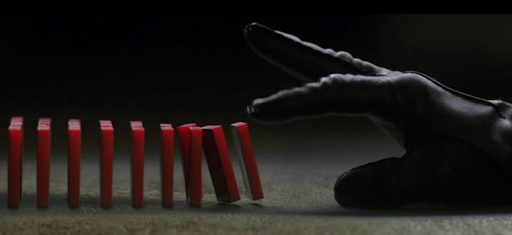 Our setting is London, which is at the centre of an oppressed United Kingdom, where John Hurt’s Adam Sutler is High Chancellor and controls the country with propaganda, fear and military control. But (for the moment) let’s go back to ‘V’, because after he rescues Evey from the dirty clutches of the night, he takes her on a roof-top-tour to show her the skyline of London for some fireworks on Bonfire Fire. However, this 5th November isn’t going to be like all the ones she has seen before because she’s here to witness him blow up the Old Bailey, then eventually take over government-controlled media and start a revolution, with the hope of rebuilding of the country and giving it back to the people. Quick side-note, before it’s pondered, here in 2020 we do actually have our ‘own country’, it’s just some people believe that having free-speech isn’t free speech (despite literally having it), but with that in mind, it’s not so hard to imagine a world where people think we’re already in a place like this. Mercifully, we’re not.