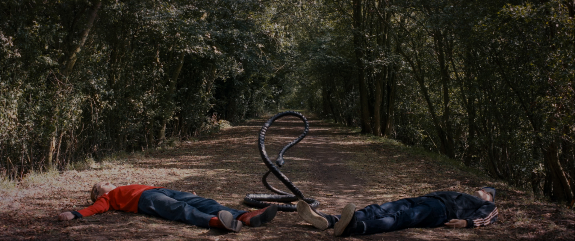 Night Visions is a curious beast and open to your interpretation of the situations. Containing a dark edge of Lynch/Cronenberg, we join two people lying on the ground on a country lane, with a strange Snake ‘statue’ sitting between them while they say things they love out loud, as if they’re declaring facts. While some of this feels a little more scripted than natural, and you’re unsure if they’re in a drugged state or it’s all metaphor, there’s no doubt over the surrealism and possibly a comment on links to obsession. It’s an experimental piece, which could do with a stronger opening over what’s going on, so we can disappear into what follows.