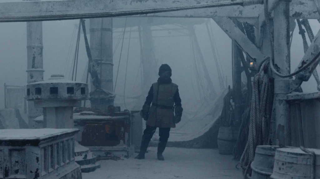 The monstrous Tuunbaq itself is an example of a creepy design with a poor execution, but thankfully the CGI is used sparingly, and there’s no denying the sheer suspense and excitement of many of the scenes involving the monster – especially the sequence where Ian Hart‘s Mr Blanky is chased up the mast. It’s a masterfully executed set-piece, and the show does such a great job of conveying the severity of the cold in the arctic, and the perils of having exposed skin outside (skin sticking to metal, some crewmembers suffering from frostbite) that even a small moment like Blanky losing a glove is loaded with significance.