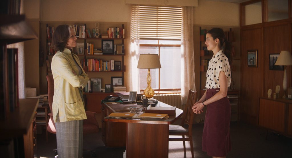Weaver’s Margaret is also excellent, and the lead duo make for a good, fascinating screen pairing. As the owner of the agency, she’s both to the point and in control of the world around her. She’s stamping her style on the business, and amusingly somewhat at war with incoming technology and keeps the office running with strength and fairness. Her relationships with Brian F. O’Byrne’s Hugh and Colm Feore’s Daniel are also filled with other stories we don’t know. This aspect gives the characters a deeper level, initially giving only a hint over how they know each other or of their history. Also keep an eye out for nice roles for Seána Kerslake, Hamza Haq and Douglas Booth, the latter playing Joanna’s somewhat obnoxious NY boyfriend.