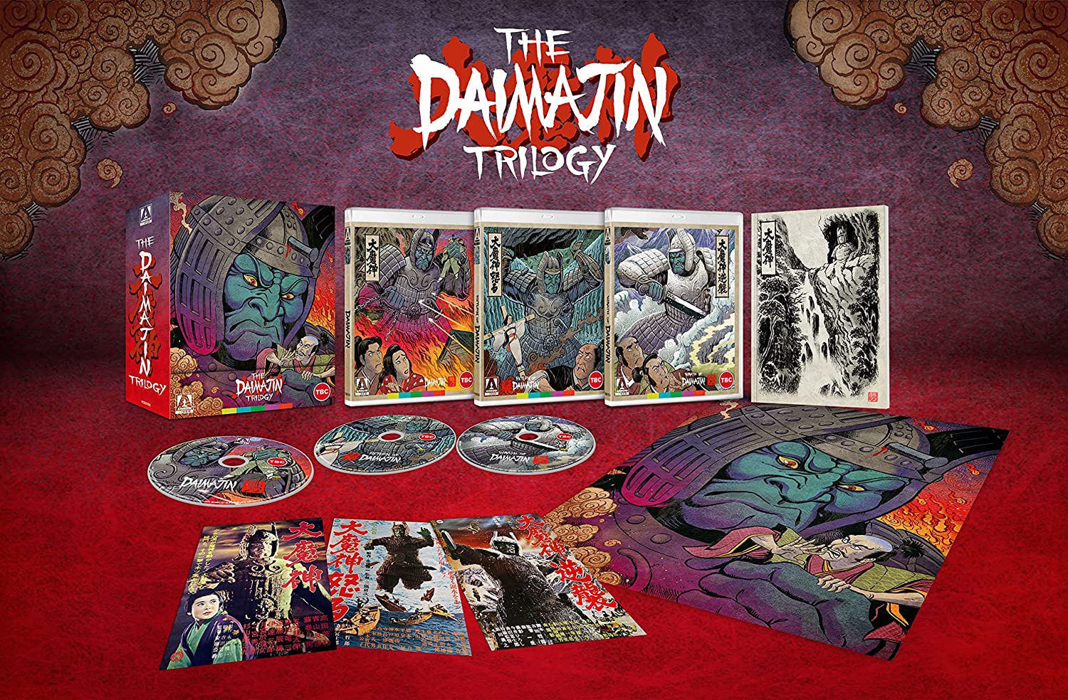 The ‘kaiju’ film – the Japanese giant monster movie – includes such classic screen icons as mutated sea monster Godzilla, flying caterpillar deity Mothra and towering turtle Gamera. Among the multitude of magnificent monsters was Daimajin, inspired by the ancient Golem story where a large stone-carved being comes to life. The Daimajin Trilogy has been brought back to life by Arrow Video in a Limited Edition 3-disc collection that comes with postcards, a 100-page book, and beautiful restorations of the three classic 1960’s kaiju films. To celebrate the release, here’s a look at the magnificent seven key players on the monster movie scene.