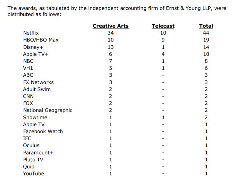 And broken down by networks, the winners aaaare….