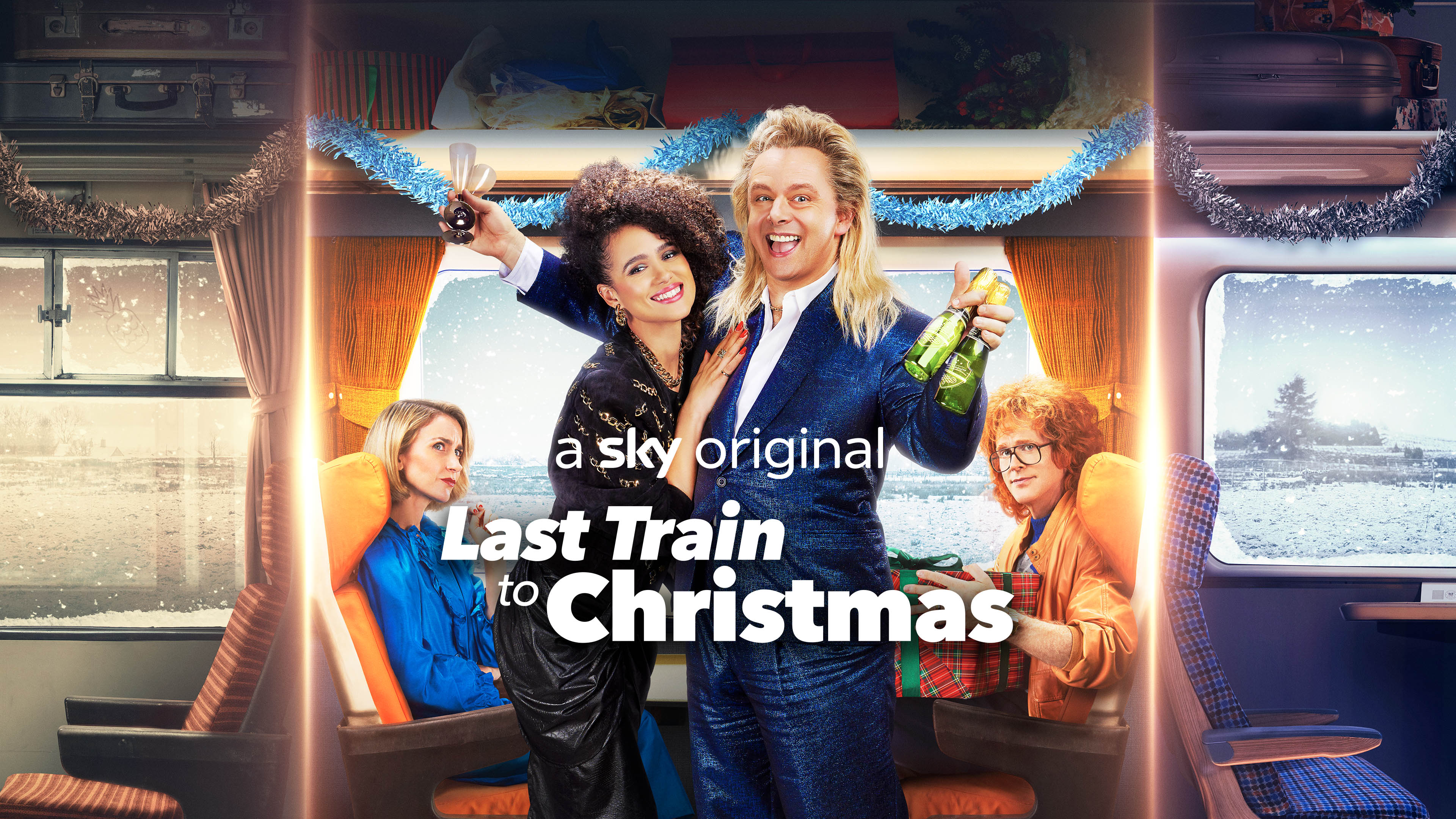 Last Train to Christmas is an intriguing concept, one of time-travelling alternative realities for Michael Sheen’s Tony Towers as he embarks on the 3:17pm St Pancreas to Nottingham train. Whilst Tony’s originally in 1985, and in good spirits with his quaffed 80s bouffant -haircut and fiancé Sue (Nathalie Emmanuel) as they travel to a Christmas family gathering, he heads off to the buffet cart to get ‘champagne for all!’ but as the sliding door between the carriages closes, he’s moved into a different decade but doesn’t know it yet… and so the travels through time begin.