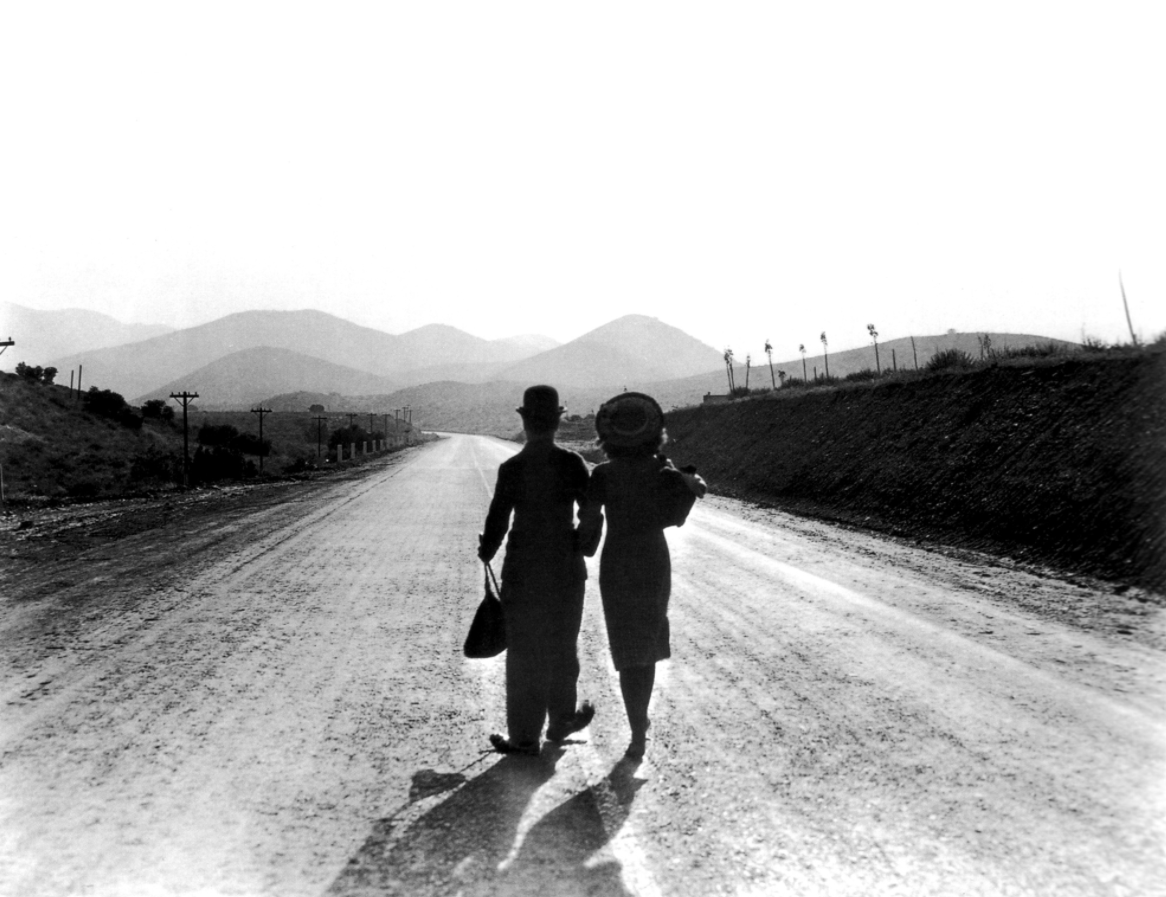 Indeed, rather than a comedy moment, the most significant element in Modern Times is the love theme composed by Chaplin himself; one of the most enduring and evocative pieces of music of the entire silent era (later recorded as Smile by Nat King Cole). It’s used sparingly, first heard as Chaplin and Goddard daydream of their idyllic future together, and for the final time as they walk into the sunset – without their dream home, but happy nonetheless.