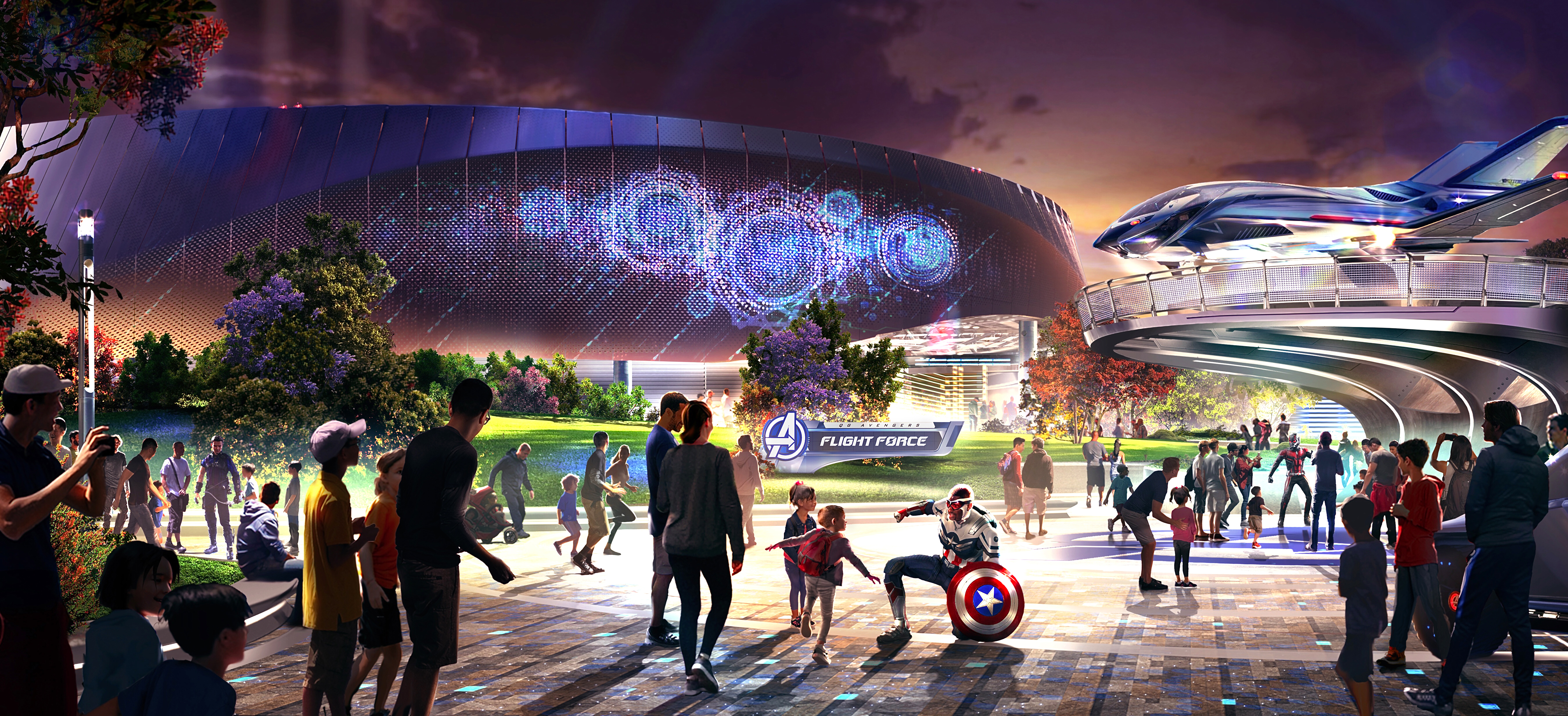 Also, a sleek new high-tech Avengers vehicle will roam the Campus throughout the day dispatching the Heroes in style! And, of course, up on the QuinPad, the gleaming Quinjet will also be the focal point of special missions.