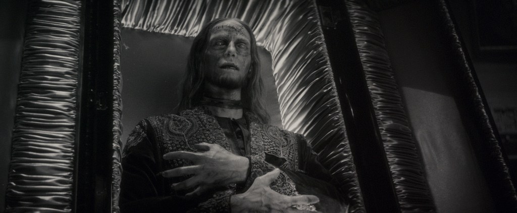 I respected the old-style black and white (ish) approach, and a 35mm crackly edge (as well as the hint of red for the central relic), but if you’re after real gore and guts, then it’s a touch surface level and more Marvel-friendly – despite a fun brutal ‘fight sequence’ in the latter third but I think they implemented digital blood, which is always disappointing when you can easily implement practical blood effects and in a genre like this, that is important.