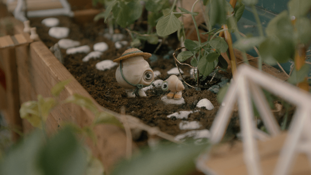 Isabella Rossellini’s vocal performance is also beautifully nuanced. She imbues Connie with a wisdom and intelligence that makes her subtle decline into dementia especially sad. Her slight confusion, combined with her overwhelming, unqualified love for her grandson is conveyed subtly and realistically. There’s a plot development that is achingly apparent to the audience but which blindsides the guileless Marcel, played to perfection by Rossellini. She fills the simply designed shell with nuance and gravitas, which leads to one of the most moving scenes of the year. Connie reciting Philip Larkin’s The Trees is a beautifully affecting moment, and it’s entirely due to her delivery, which for a moment makes you forget that it’s an animated shell reading a poem.