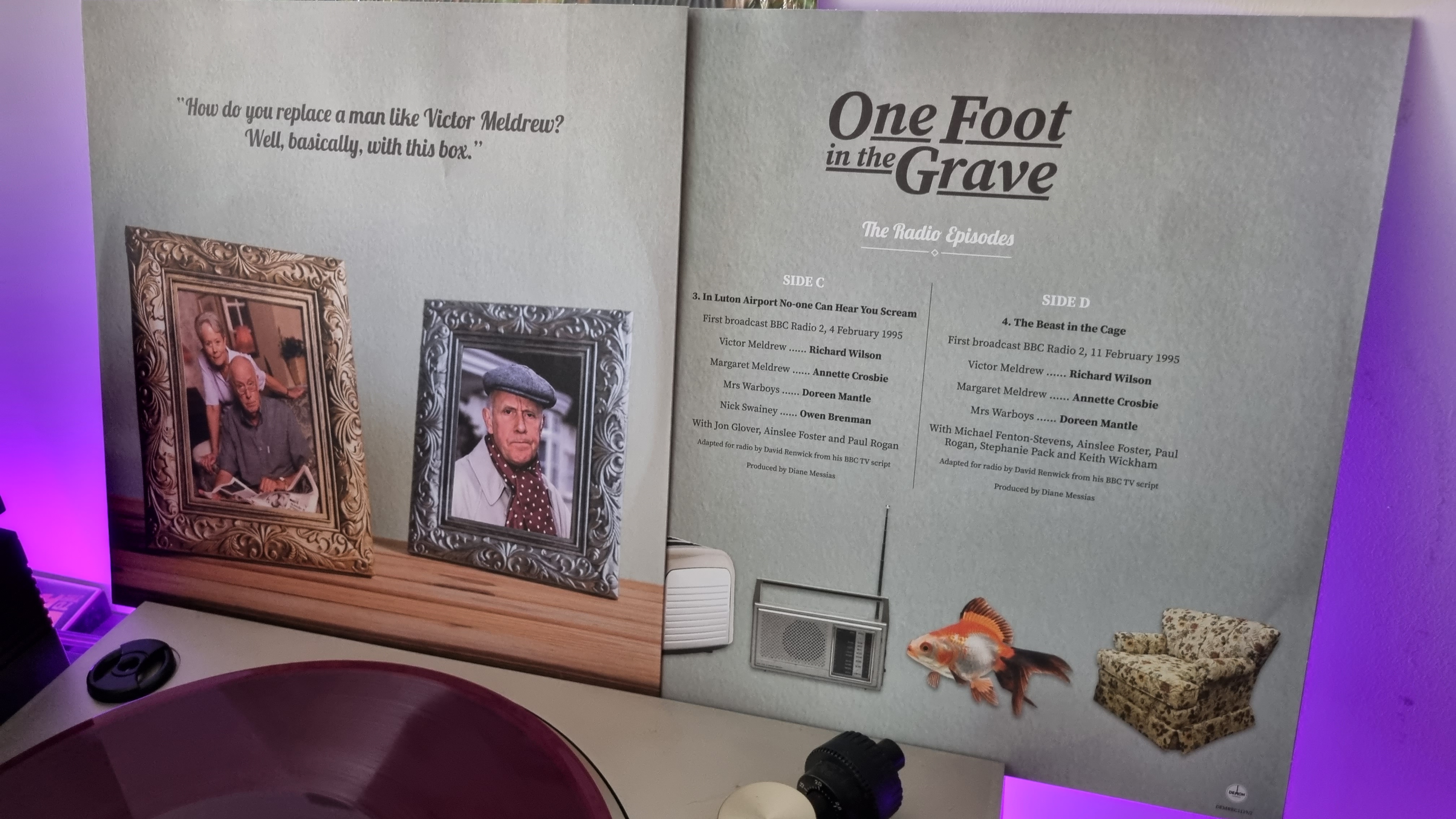 One Foot in the Grave: The Radio Episodes also has a simple setup from Minty Design. The two record sleeves inside feature photos in frames of Victor and Margaret Meldrew, alongside picked-out images of object or animals that have played a part in their lives – and some you may well recognise. The two records are a light purple/burgundy, and both played excellently – this is another success from Phil Kinrade at Alchemy Mastering for the BBC and Demon Records, and a true celebration of all things Meldrew – in the best way possible.