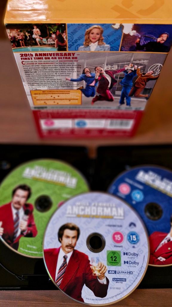 It’s worth mentioning that this Special Edition set is lovely from Paramount, so as well as the 4K UHD theatrical disc, you’ve also got a secondary Blu-ray with both the theatrical and extended versions plus commentary from by Adam McKay, Will Ferrell, Lou Rawls, Andy Richter, Kyle Gass, Paul Rudd, David Koechner, and Christina Applegate (which feels quite rare to happen), the classic bloopers reel, a mad 36 deleted and extended scenes (I honestly wonder how many edits it must have gone through), plus the iconic Afternoon Delight video, and even an amusing ESPN Sports Centre Audition for the one and only, Ron Burgundy.