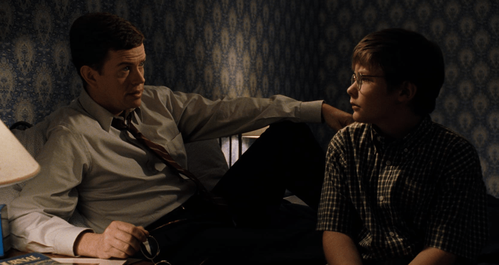 The final scene between Bill and his son Billy (Rufus Read) is simultaneously horrifying and tender. There’s an uncomfortable contrast drawn between the paedophile who has an open, honest relationship with his sexually frustrated son, and the father of the victim, who wants to hire a prostitute to turn his “gay” son straight. Billy’s relationship with his father, messed up as it is, is shown throughout as a loving, honest one, and the boy’s final jubilant line, “I came!” is funny, almost triumphant, and at the same time tragic, because the people he is talking to look at him like he’s a little freak. He’s lost the only person in his life who would react without judgment.