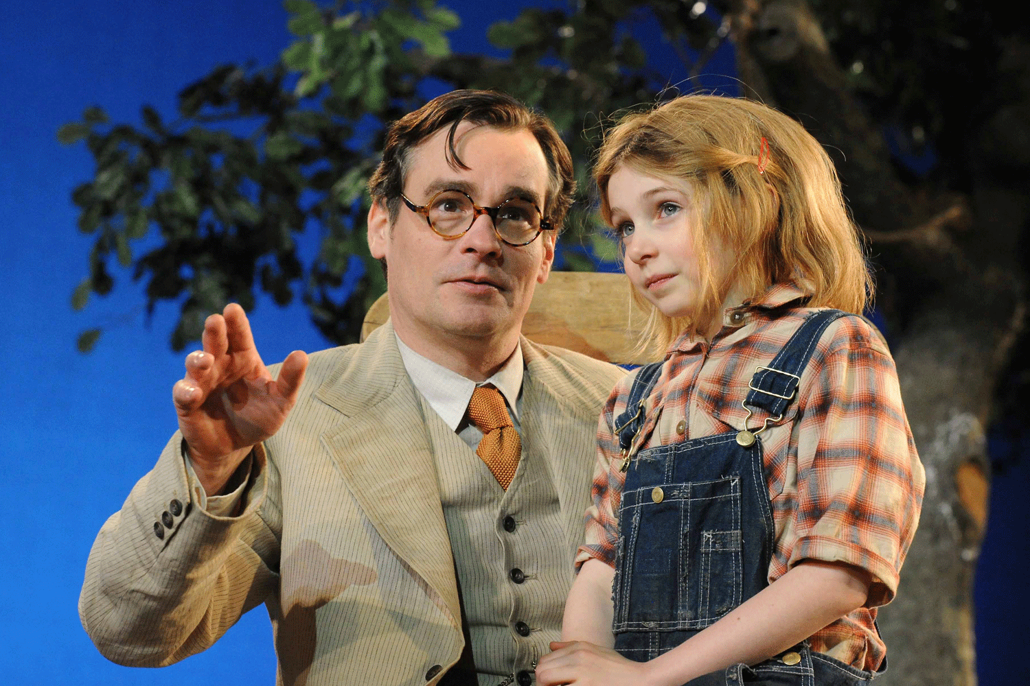 The first act is snappy, heart-warming and insightful and follows the young life of Scout. The older actors continue to read from the novel of Harper Lee and switch between story-tellers and characters in the play. What makes this version particularly special is the effortless entwining of narration and acting out the scenes themselves, the lines flow from every actor. We also see early indications of the secret, subtle strengths of the play and it’s truly brilliant three child-actors playing Scout (Eleanor Worthington-Cox), Jem (Callum Henderson) and Dill (Sebastian Clifford).