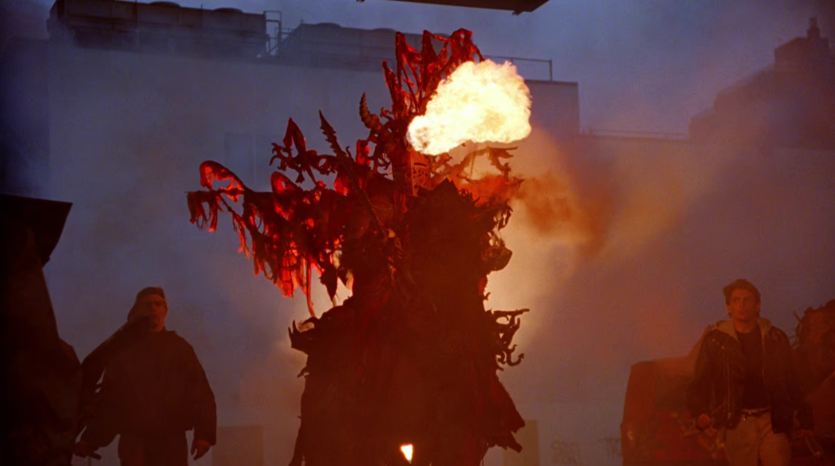 The Fisher King marked several firsts for Gilliam: his first present-day setting, his first script not written by himself, and his first attempt at grounding his story at least partly in a realistic setting. Yet it retains hallmarks of his previous work; All Gilliam’s films to this point were preoccupied with vivid imaginations, be it a child’s mind (Time Bandits), the fantasist older mind (Baron Munchausen) or a daydream world of escapism (Brazil). However where in Brazil, the daydreaming of Sam Lowry is a way for him to escape the monotony of his dreary office life, in The Fisher King, Parry’s visions, particularly the terrifying Red Knight, are a psychological coping mechanism for his grief. The Red Knight’s presence in the contemporary setting is both surreal and haunting, and the climactic confrontation between Parry and the knight is visually striking and deeply unsettling.