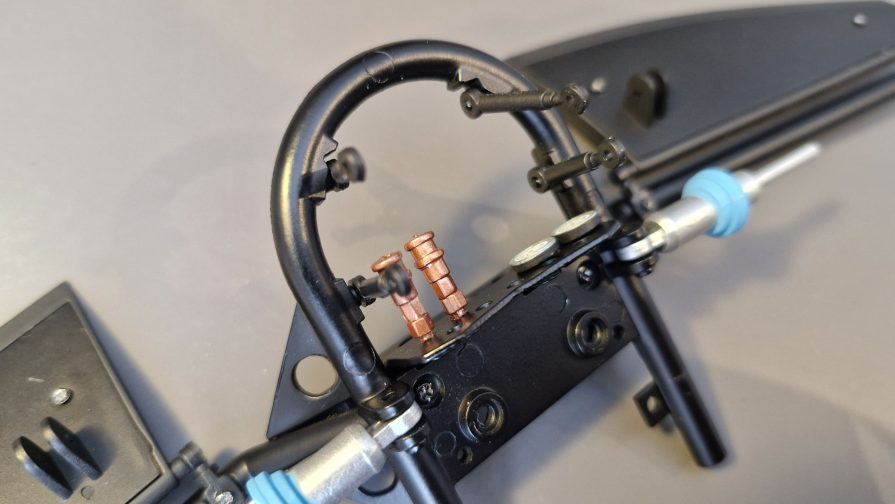 Oddly, you don’t get to attach all the chassis work yet, but you do add the aforementioned cylinders and get the rest ready for a nice, heavy weight of the rear axle of Issue 107, which takes the emergency airbrake frame and keeps that previous issue going. At first, you do wonder where this will fit into the tail and once you have the chassis in situ, you can see it quite easily slots in and – my favourite – those proper CM screws, along with a couple of XP’s, that are both sturdy screws that feel like they’re strong enough to hold the bigger wheels to come later. I didn’t find this part too complex, although the Tumbler is huge now, so you’ll have to find your favourite angles to get those screws in place, and the overall look of the airbrakes from above is mighty fine.