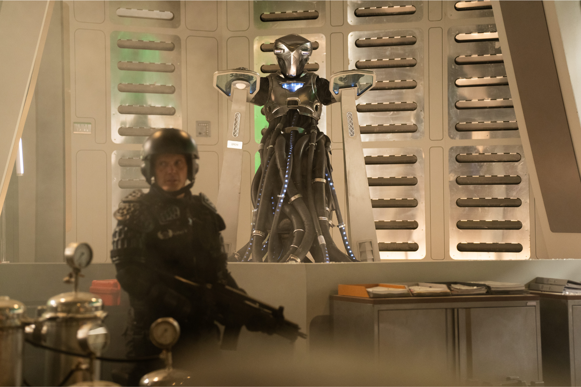 Opening the episode with a call-back to Joy to the World – the most recent Christmas Special, and the up until now the worst episode of this era by far – certainly started things in an odd place. In a way, it’s good to see that the Time Hotel hasn’t been entirely forgotten about, and in a timey-wimey way it does make sense that it can help reality reassert itself at U.N.I.T Tower, but then everything stops dead. Director Alex Sanjiv Pillai leaves virtually the entire cast standing still for about five minutes so that the Doctor and the Rani can talk at each other, throwing out references to Time and the Rani, bizarre lore changes (apparently Time Lords are infertile now) and clunky exposition. Bonnie Langford’s Mel meeting the Rani again (albeit now played by a wasted Archie Panjabi) seems ripe for some interesting character development, but that’s immediately squandered. The Rani wanting to start a new race of Time Lords is an interesting idea left half-baked. After hanging around for two whole seasons, Anita Dobson’s Rani is still pushed aside and left as a dangling thread for future episodes. Yasmin Finney returns as Rose only to stand around with nothing to do…just like in last year’s season finale. It’s difficult not to feel that Finney has been wasted in a role that seemed on paper like a new great recurring character. Shirley’s rebellion against Conrad set up last week is retconned out of existence, but at least Ruth Madeley gets to fire lasers at the giant bone beasts, so she’s not completely wasted here.