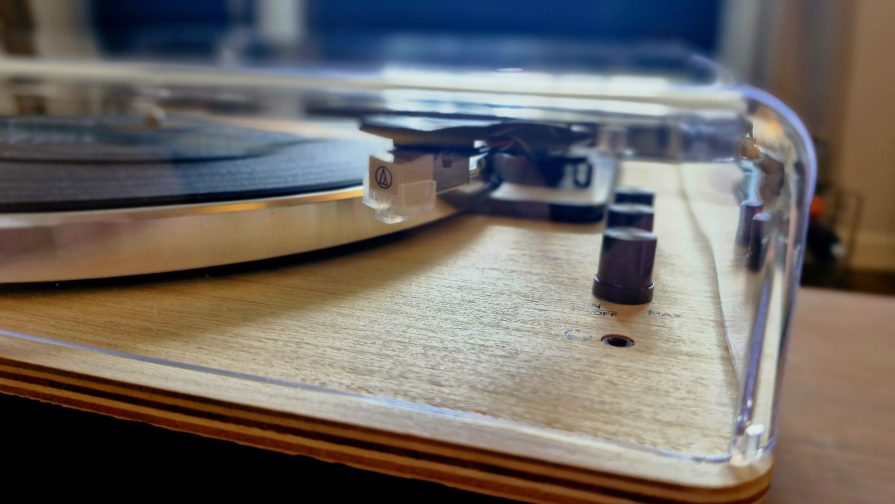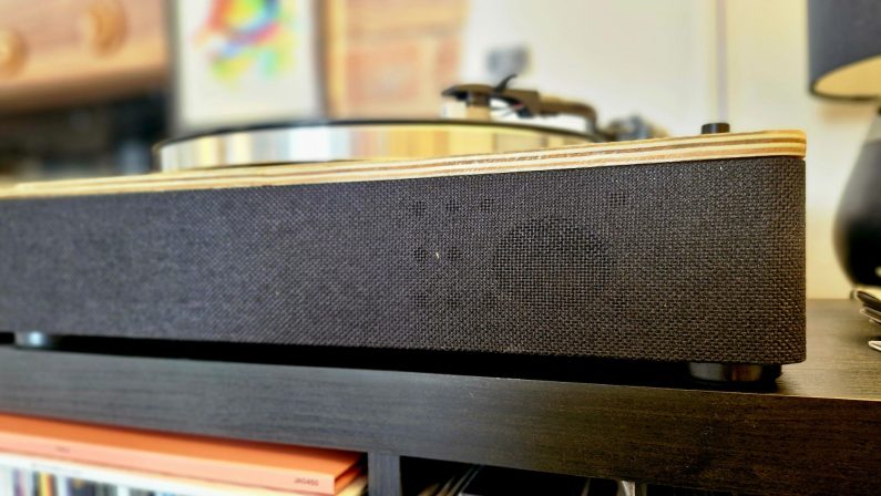 In terms of design and weight, it’s a solid little beast at 3.7kg and certainly feels strong, which is a constructive thing. The wooden top, along with the speakers built-it around the base, give it a subtly stylish book-like vibe and you can see it fitting into any modern space, of any size – which is another huge benefit. Also, don’t forget, because you can hear your music the minute you put down that needle on the record, there’s the extra bonus of it being portable to. Once you slide on the dust cover, it’s a sturdy setup and one that you would expect for the price, so another good benefit.