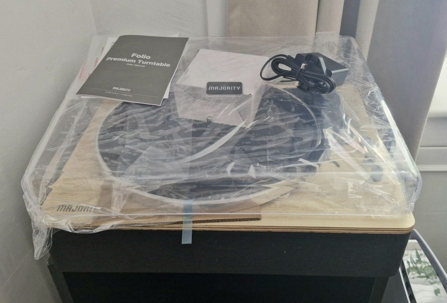 In terms of setup, the Majority Folio is so easy to work as the record platter/player is ready to go. It’s just a case of removing a few bits of cardboard and plastic – that’s keeping everything in place when it’s delivered – plus taking off some safety stickers and rubber bands, then you just have to plug it in [supplied] and get your records ready to play!
