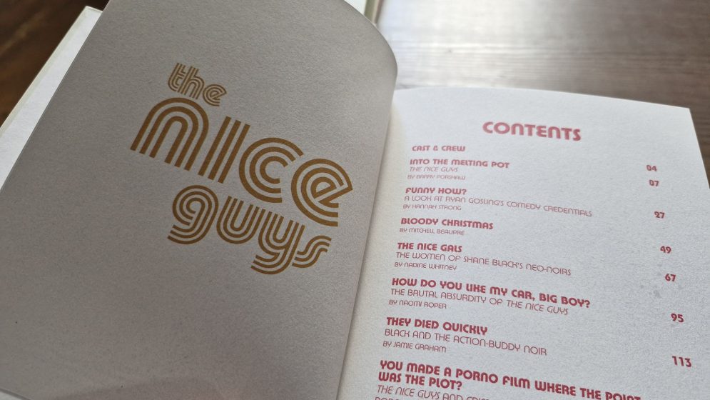 For the release, you get the now-standard dual format edition, which is a UHD and Blu-ray containing both the film and bonus features. This envelopes an excellent new 4K UHD master (which looked exceptionally crisp and sharp to me), produced by Second Sight and presented in HDR Dolby Vision, approved by Black. There’s also Dolby Atmos audio produced by Second Sight Films and original 5.1 audio mix, that’s very welcome. The film arrives in an impressively rigid slipcase with connected artwork by Obviously Creative (plus 9 character art cards), plus an astute 150-page hardback book with individual essays from Mitchell Beaupre, Barry Forshaw, Jamie Graham, Justin LaLiberty, Naomi Roper, Hannah Strong and Nadine Whitney – that explore the likes of Gosling’s comedy credentials, the absurdity of the situation, as well as essays on Black’s neo-noir vibe and his action-buddy setups.