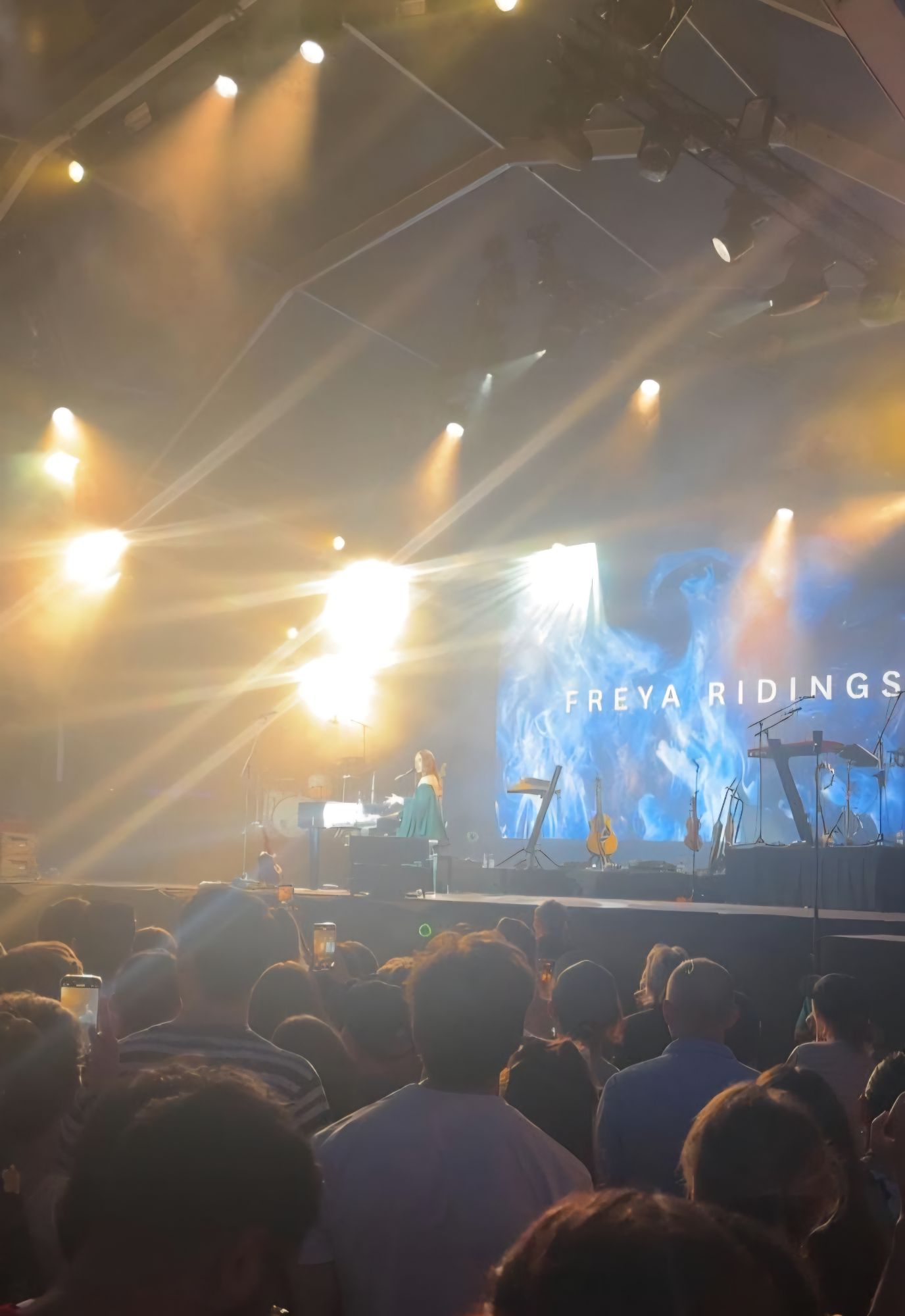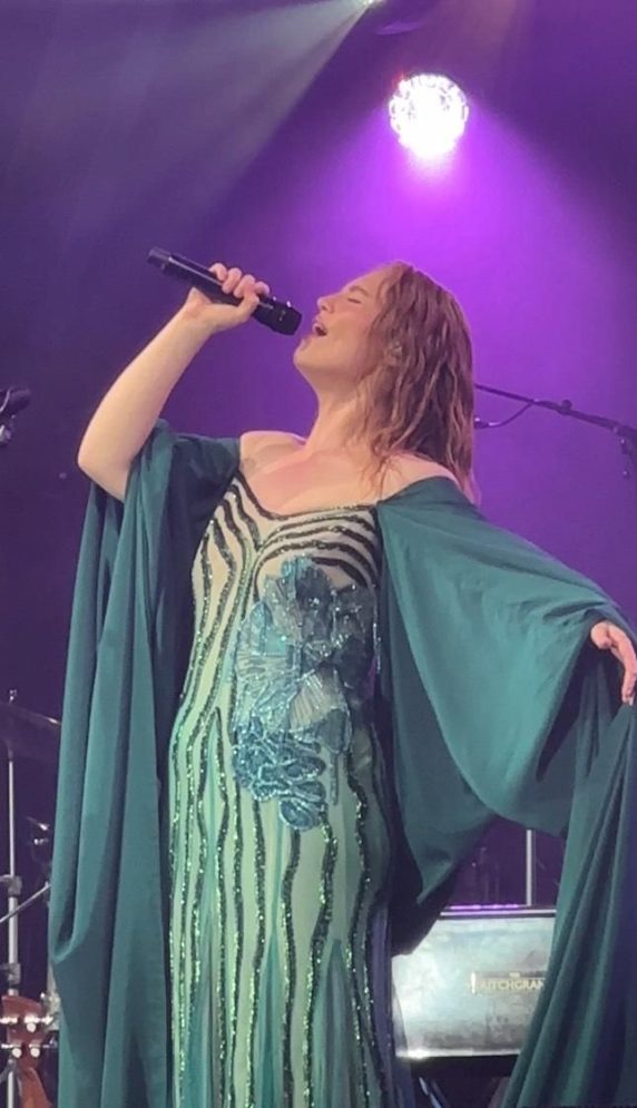 Opener Nell Mescal impresses, proving she’s more than just Paul’s sister, with a set full of charm and emotional punch, and the perfect palate cleanser before the main show and then we’re onto the main event, and Freya Ridings’ show is suitably stripped back. She takes to the stage in a flowing emerald gown, her long red hair like a pre-Raphaelite painting come to life. A piano and just five backing performers complete her ensemble onstage, all setting a mood for a set that’s delicate, cinematic and quietly commanding. Behind her, a huge screen pulses with shifting colour, part ambient art installation, part MacBook screensaver. The minimalism works. It throws all the focus on her voice, that aching cathedral-clear vocal that feels particularly suited to the sincerity of her lyrics.