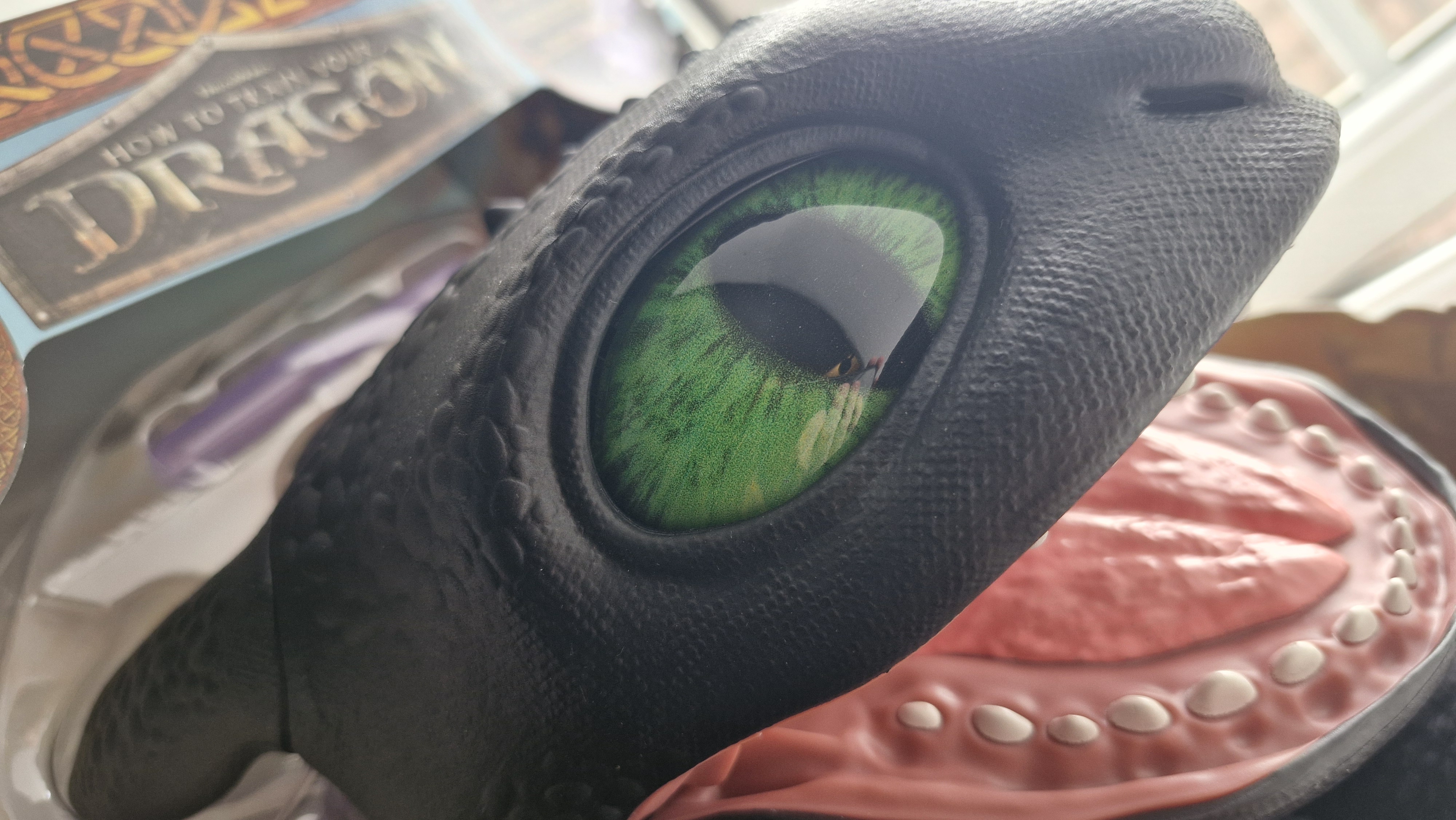 While his whole head moves in pretty much any direction, you’ve also got the option to slightly close his eyelids. I would have liked these to be more ‘closed’ – as it’s just a little movement on the lids – it still enables more switches in facial expressions, nonetheless. I did wonder if a more closed lid might be more difficult to integrate, without the plastic getting stuck (think defunct creepy dolls as an example!). Other than that, you can open and close the mouth at your disposal and get him talking to you – or others nearby – and make sure Toothless is getting the attention he deserves, and he’s very expressive and comes complete with those legendary black wings – NOTE: Read the instructions carefully before using though, they’re properly helpful and you’ll have a QR code you can scan.